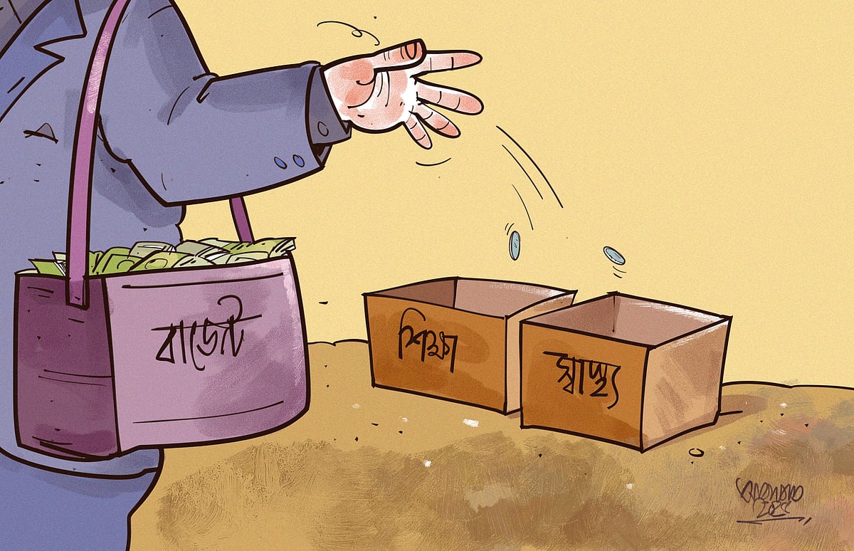 অর্থনীতির আকারের তুলনায় শিক্ষা খাতে সবচেয়ে কম বরাদ্দের দেশগুলোর একটি বাংলাদেশ। আবার মৌলিক স্বাস্থ্যসেবা পাওয়ার জন্য প্রয়োজনের তুলনায় অনেক কম খরচ করি আমরা। এটা সত্যি, রাতারাতি এ ধারায় পরিবর্তন আসবে না। আমাদের সম্পদ কম। আবার আন্তর্জাতিক মুদ্রা তহবিলের ঋণের শর্তের বাস্তবতাও আছে। সে কারণেই বাজেট প্রণয়নের ক্ষেত্রে একধরনের রক্ষণশীল দৃষ্টিভঙ্গি দেখা যাচ্ছে। সরকার মূলত সীমিত সম্পদ, দুর্নীতি কমানো ও আইএমএফের চাপে এই রক্ষণশীলতার পথে হাঁটছে।