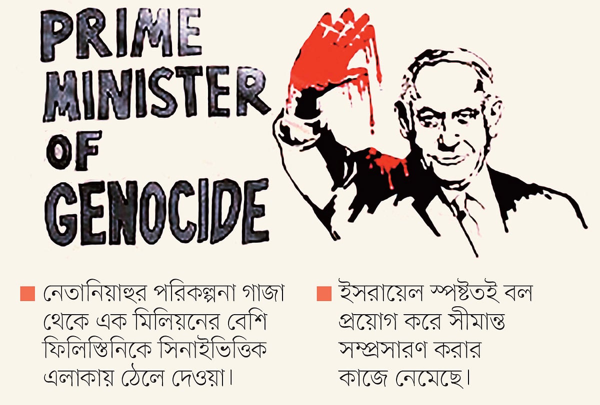 নেতানিয়াহুর পরিকল্পনা গাজা থেকে এক মিলিয়নের বেশি ফিলিস্তিনিকে সিনাইভিত্তিক এলাকায় ঠেলে দেওয়া। এটি মিসরের জাতীয় নিরাপত্তার ওপর সরাসরি হুমকি হিসেবে দেখা হচ্ছে। গাজার জনসংখ্যার অর্ধেক খালি করে দেওয়ার কোনো পরিকল্পনা মিসরের সহযোগিতা ছাড়া সফল হতে পারে না। যতক্ষণ আরও ফিলিস্তিনিকে দক্ষিণে ঠেলে দেওয়া হবে, সিনাই ততই ইসরায়েলের সামরিক লক্ষ্যবস্তুতে পরিণত হবে।