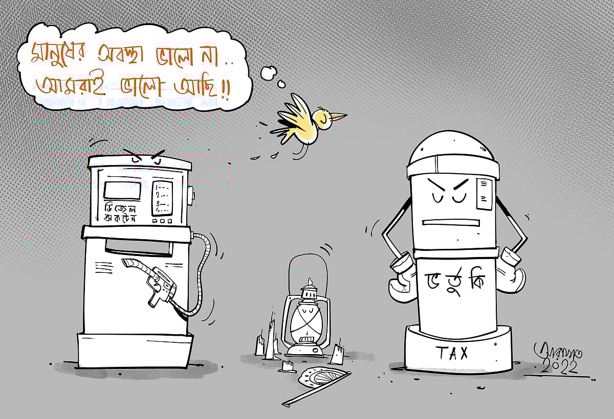 সরকারের ভাঙা যুক্তি—বিশ্ববাজারে তেলের দাম বেড়েছে, তাই নিরুপায় হয়ে বাড়াতে হচ্ছে। কথাটা ভুল। কারণ, এখন বিশ্ববাজারে তেলের দাম ঊর্ধ্বমুখী নয়, বরং নিম্নমুখী। দ্বিতীয়ত, বলা হচ্ছে তেল আমদানিতে বিপুল ভর্তুকি দেওয়া হয়েছে, কিন্তু সরকারি প্রধান তথ্যসূত্র বাংলাদেশ ইকোনমিক রিভিউ ২০২২ (জুন ২০২২–এ প্রকাশিত) বলছে উল্টো কথা। তাদের দেওয়া তথ্য অনুযায়ী ২০১৪-১৫ থেকে ২০২২ সালের ফেব্রুয়ারি পর্যন্ত সরকার জ্বালানি তেল আমদানি করে কোনো ভর্তুকি দেয়নি। উপরন্তু এই সময়ে (২৩ মে ২০২২ পর্যন্ত) মোট মুনাফা করেছে ৪৮ হাজার ১২২ কোটি ১১ পয়সা। গত কয়েক মাসে যে লোকসান হয়েছে, তার তুলনায় এই লাভ কয়েক গুণ বেশি। তার মানে সরকার জনস্বার্থ ও অর্থনীতির কথা চিন্তা করলে লাভের টাকার একাংশ দিয়েই এই লোকসান ঠেকাতে পারত। তৃতীয়ত, দাম বাড়ালে যে ভয়াবহ পরিণতি হয়, সে কথা চিন্তা করে বহু দেশেই তেল আমদানির ওপর কর–শুল্ক প্রত্যাহার করে দাম কম রাখতে চেষ্টা করছে। সরকার সেটিও করেনি। চতুর্থত, বলা হয়েছে, অকটেন ও পেট্রল আমাদের কিনতে হয় না, দেশেই উদ্বৃত্ত হয়। তাহলে বিশ্ববাজারের মূল্যবৃদ্ধির যুক্তি কীভাবে আসতে পারে?