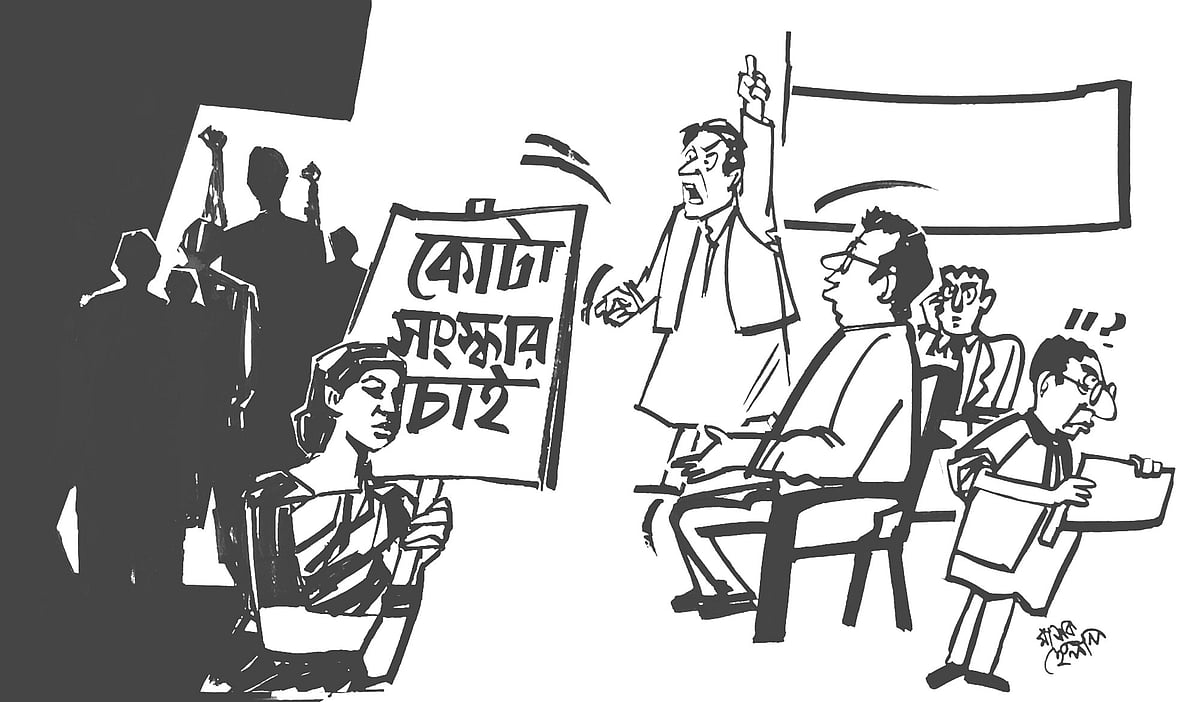 কোটার এই আন্দোলন অবশ্য দ্বিতীয় দফা আন্দোলন। ২০১৮ সালে কোটা নিয়ে যখন আন্দোলন হয়েছিল, ছাত্ররা তখন চেয়েছিল কোটার সংস্কার। কিন্তু সরকার কারও পরামর্শ না শুনে একতরফাভাবে কোটা বাতিল করে দেয়। এ সিদ্ধান্ত নিয়ে তখন প্রশ্ন তৈরি হয়েছিল।
