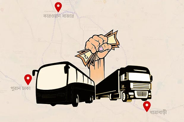 শাকসবজি, মাছ-মাংস থেকে শুরু করে অন্যান্য খাদ্যপণ্য কৃষক বা উৎপাদক থেকে শুরু করে ভোক্তার হাতে পৌঁছতে চাঁদাবাজি এখানেই থেমে নেই। ঢাকার পাড়া-মহল্লায় ভ্যানে করে কিংবা রাস্তার পাশে ফুটপাতে টুকরিতে করে কিংবা বাজারে তিন-চার বর্গফুটের জায়গা নিয়ে যাঁরা সেগুলো বিক্রি করেন, তাঁদের কাছ থেকে ক্ষমতাসীন রাজনৈতিক দল ও পুলিশের চাঁদাবাজি যোগ করতে হবে।