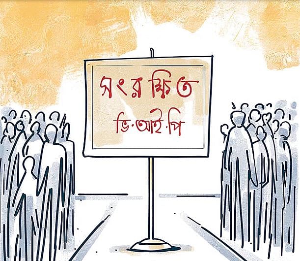 একটি বেসরকারি ব্যাংকে দীর্ঘক্ষণ অপেক্ষা করার পর যখন আমার সিরিয়াল এল, তখন হঠাৎ করেই দুজন বিশেষ মানুষের আবির্ভাব। কাউন্টারের কর্মকর্তা শশব্যস্ত হয়ে বললেন, ‘ও আপনারা ম্যানেজার স্যারের লোক, দাঁড়ান, এক্ষুণি করে দিচ্ছি।’ হতভম্ব হয়ে আমি জিজ্ঞাসা করলাম, ‘ওনারা কি আমার আগের সিরিয়ালের?’ উত্তরে খুব স্বাভাবিকভাবে সেই কর্মকর্তা বললেন, ‘ভিআইপি তো দু-একজন থাকবেই, এটা মানতে হবে।’ ভাবখানা এমন যে আমি কেন এসব কথা বলব! এটা তো স্বাভাবিক বিষয়! এখানে তো কোনো ব্যত্যয় হয়নি, বরং আমি কথা বলে ব্যত্যয় ঘটিয়েছি।
