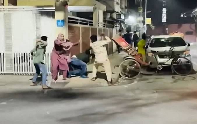 ভাইরাল হওয়া ১৩ সেকেন্ডের ভিডিওতে দেখা যায়, একজন নারী ও একজন পুরুষের ওপর দুজন ধারালো অস্ত্র (রামদা) দিয়ে হামলা করছেন। তাঁরা বাঁচার জন্য চিৎকার করছেন। একপর্যায়ে ফুটপাত ঘেঁষে রাখা একটি রিকশার পেছনে আশ্রয় নেন হামলার শিকার পুরুষটি। তখন এক যুবক রিকশার সামনের দিকে ঘুরে তাঁর ওপর হামলা করেন। নারীর ওপর হামলাকারী যুবকও দৌড়ে রিকশার কাছে আসেন। এরপর হামলার শিকার নারী দৌড়ে পুরুষের কাছে এসে ঢাল হয়ে তাঁকে রক্ষার চেষ্টা করেন।