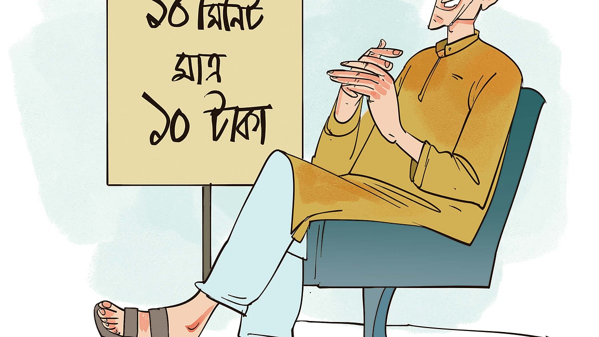 হাসান ভাবেন, ধরা যাক, কারও ছাদে রোদ এসে পড়ে। তিনি বলবেন, আসুন আসুন, ভেজালমুক্ত রোদ খান। ১০ মিনিট মাত্র ১০ টাকা।