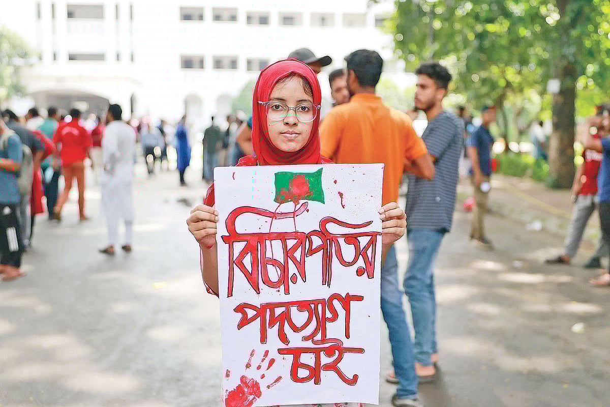 উপমহাদেশের জনপ্রিয় গণসংগীতশিল্পী প্রয়াত সলিল চৌধুরী তাঁর গানে গেয়েছিলেন, ‘বিচারপতি তোমার বিচার করবে যারা আজ জেগেছে সেই জনতা’। তিনি তাঁর ৭০ বছরের জীবদ্দশায় তা দেখে যেতে পেরেছেন কি না বলতে পারি না। তবে বাঙালি এই শিল্পীর লেখা, সুর দেওয়া ও গাওয়া গানের বাস্তব রূপ আমরা যে দেখতে পেলাম, তা কোনো দিন আমাদের কল্পনাতেও আসেনি। তা-ও এমন এক অভূতপূর্ব পরিস্থিতিতে ঘটল, যার দায় রাজনৈতিকভাবে আওয়ামী লীগ ও তার প্রধান শেখ হাসিনার এবং বিচার বিভাগের দিক থেকে সেই সব বিচারপতির, যাঁরা নিজেদের ন্যায়বিচারের প্রতিভূ ভাবার বদলে ‘শপথবদ্ধ রাজনীতিবিদ’ ভাবতে গর্ববোধ করতেন।