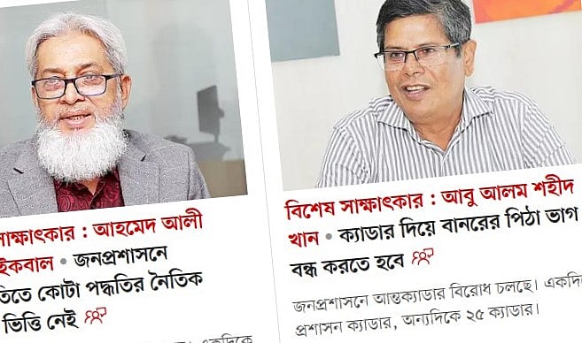 জনপ্রশাসনে আন্তক্যাডার বৈষম্য ও ক্যাডারদের মধ্যে বিরোধ নিয়ে ৫ জানুয়ারি দৈনিক প্রথম আলোতে দুটি সাক্ষাৎকার পড়লাম।