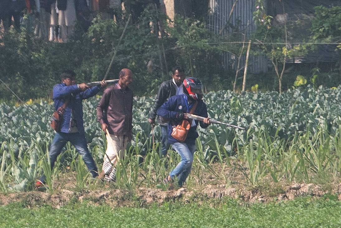চট্টগ্রামের সাতকানিয়া উপজেলার খাগরিয়া ইউনিয়ন পরিষদের (ইউপি) নির্বাচনে ভোট গ্রহণ চলাকালে প্রতিদ্বন্দ্বী দুই প্রার্থীর কর্মী–সমর্থকদের মধ্যে পাল্টাপাল্টি গোলাগুলির ঘটনা ঘটেছে। এ সময় একাধিক ব্যক্তির কাছে দেখা যায় বিভিন্ন ধরনের অস্ত্র। আজ সোমবার সকালের চিত্র।