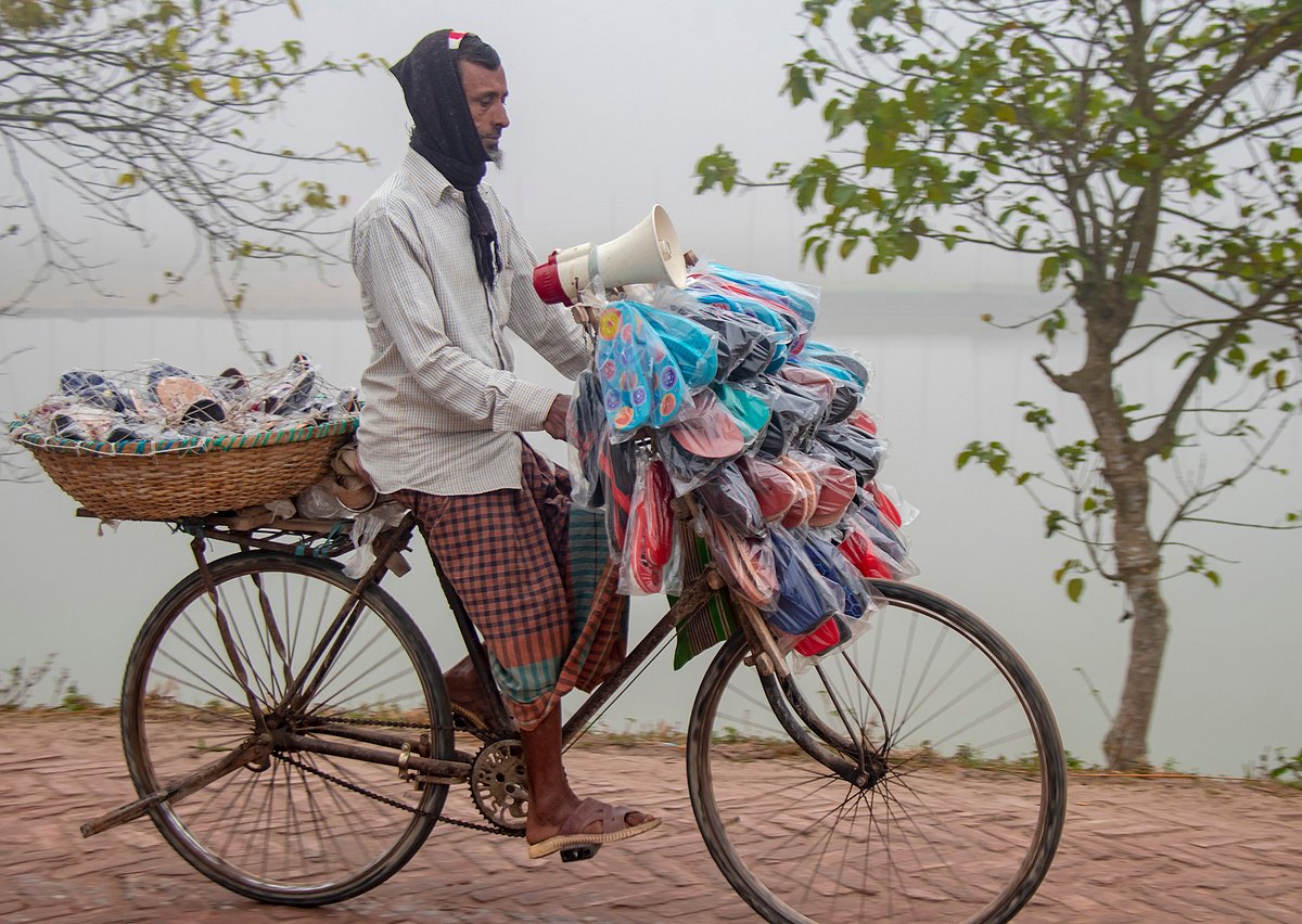 শীতের কাপড় ভ্যানে করে বিক্রি হচ্ছে ফুটপাতে। ফজলুল হক অ্যাভিনিউ, বরিশাল, ২১ নভেম্বর।