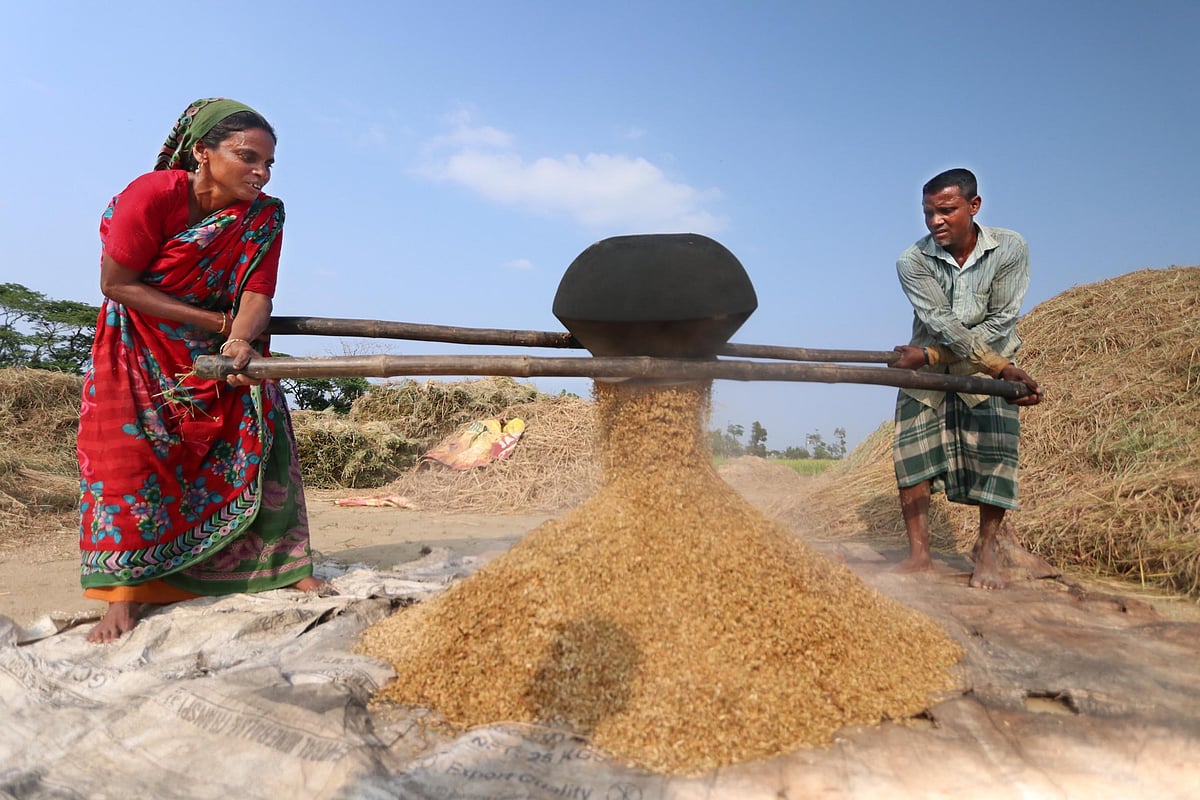 বৈশাখের প্রথম দিন থেকেই হাওরাঞ্চলে চলছে বোরো ধান কাটা। হাওরে বইছে উৎসবের আমেজ। হাওরের পুবালি বাতাসে এখন পাকা ধানের মনমাতানো গন্ধ। এ বছর ফলন ভালো হওয়ায় কৃষকের মন ফুরফুরে। আবহাওয়া অনুকূলে থাকায় মনে আনন্দ নিয়েই ধান কাটা চলছে। হাওরে ছোট-বড় সবাই ব্যস্ত এখন সোনালি ফসল নিয়ে। সকাল থেকে সন্ধ্যা অবধি কিষান-কিষানি সবাই ব্যস্ত নতুন ধান গোলায় তুলতে। সোনালি ধান মাথায় বা কাঁধে বয়ে আনা হয় ধান মাড়াইয়ের খলায়। একদিকে ধান কাটা, অন্যদিকে মাড়াই। পুরো বৈশাখজুড়ে হাওরে চোখে পড়বে এমন চিত্র। সিলেট সদরের নীলগাঁও, সামাউড়াকান্দি হাওর, বাওরকান্দি হাওর থেকে ছবিগুলো সম্প্রতি তোলা।
