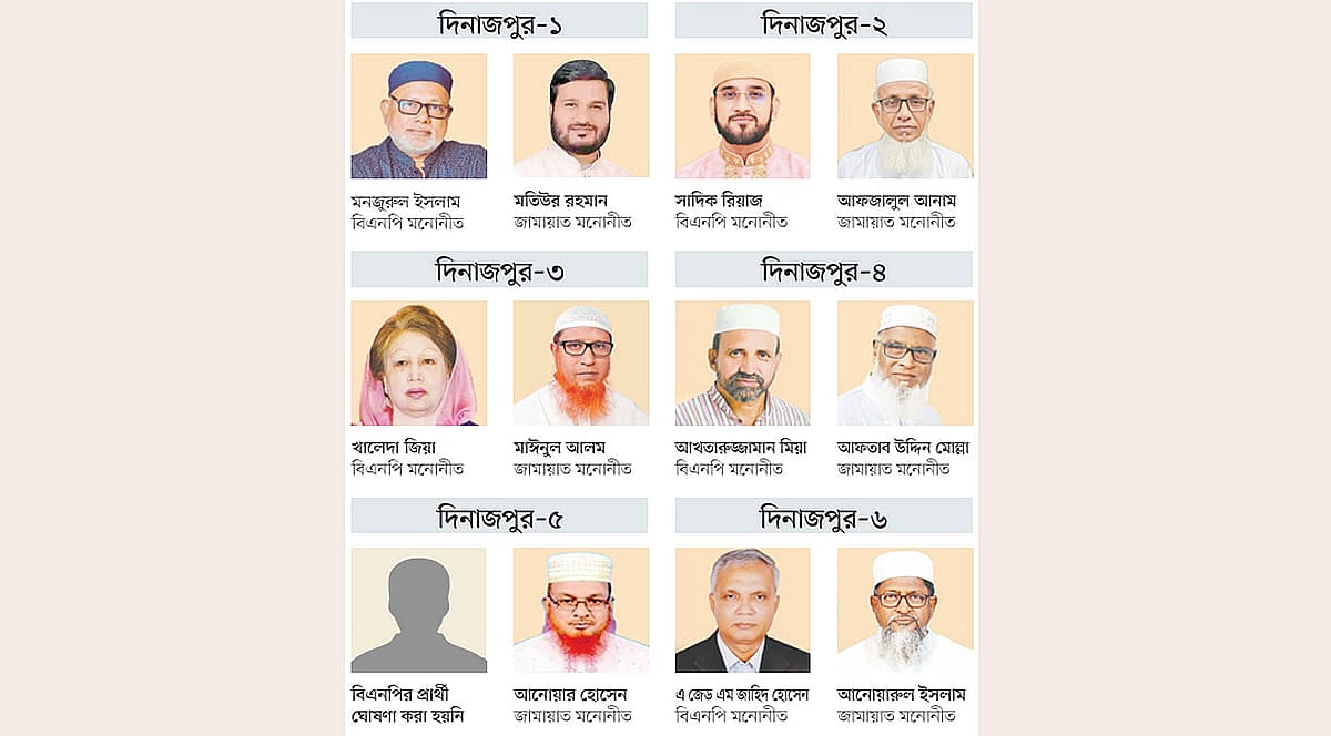 ত্রয়োদশ জাতীয় সংসদ নির্বাচন সামনে রেখে দিনাজপুরের ছয়টি আসনে আগাম প্রচার-প্রচারণা শুরু হয়েছে। বিএনপি-জামায়াতসহ বিভিন্ন দলের নেতারা প্রতিদিনই গণসংযোগ করে ভোটারদের নানা প্রতিশ্রুতি দিচ্ছেন। ছয়টি আসনের মধ্যে পাঁচটিতে প্রার্থী দিয়েছে বিএনপি। এর মধ্যে দুটিতে প্রার্থী নিয়ে দলের একাংশের মধ্যে অসন্তোষ রয়েছে। সদরে মনোনয়ন নিয়ে নেতাদের মধ্যে বিভেদ থাকলেও বিএনপির চেয়ারপারসন খালেদা জিয়াকে প্রার্থী ঘোষণা করায় তাঁরা এককাট্টা হয়েছেন। অন্যদিকে অনেক আগে থেকে মাঠে রয়েছে জামায়াত।