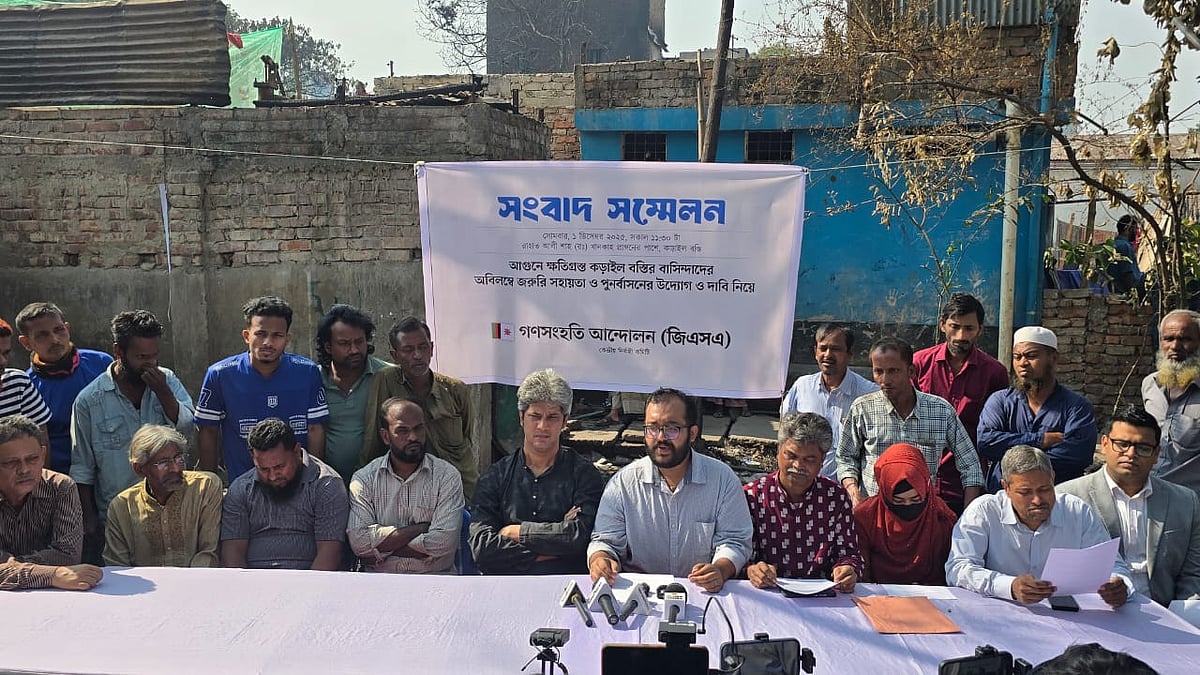 সংবাদ সম্মেলনে কড়াইল বস্তির ক্ষতিগ্রস্ত বাসিন্দাদের পাশাপাশি গণসংহতি আন্দোলনের কড়াইল রিলিফ ক্যাম্পের সংগঠক শাহীদা আক্তার, মোহাম্মদ মোতালেব, আবুল কালাম, আবদুর রহিম প্রমুখ উপস্থিত ছিলেন।