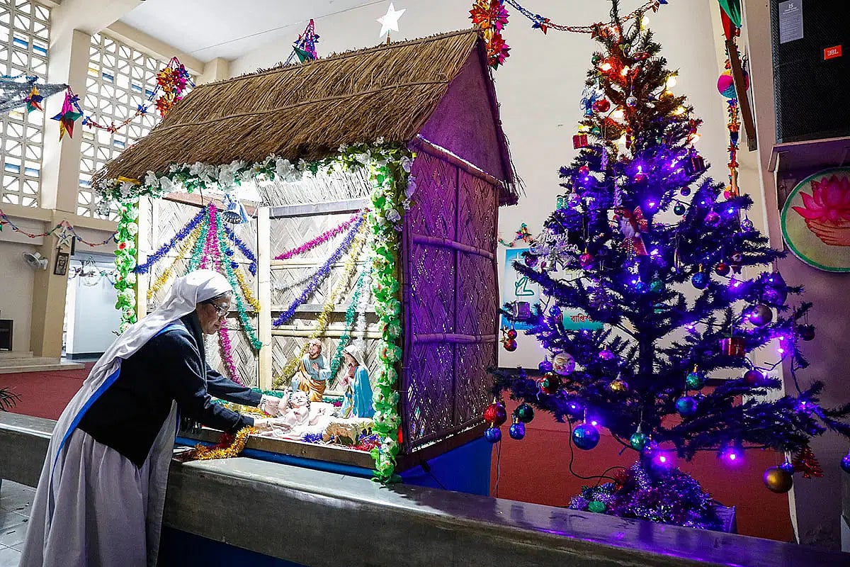 পশুকে খড় খাওয়ানোর গামলায় শিশু যিশু এবং তাঁর পাশে মা মেরি ও যোসেফকে দণ্ডায়মান দেখানো হয়।