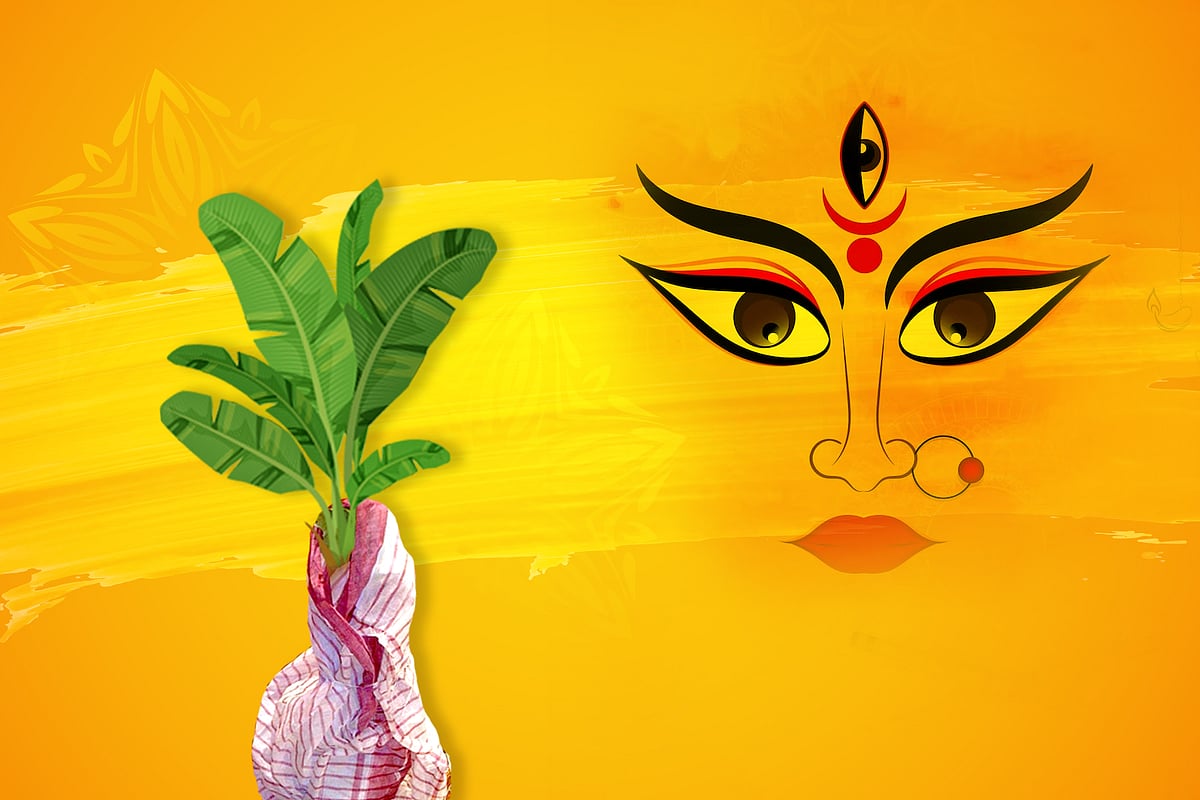 দুর্গাপূজা শুরু হয়েছে। বেলগাছের নিচে দেবী দুর্গার বোধন, আমন্ত্রণ ও অধিবাসের পর আসে মহাসপ্তমী। বোধন মানে দেবীকে ঘুম থেকে জাগানো। শাস্ত্রমতে, আষাঢ় থেকে কার্তিক মাস পর্যন্ত দেবদেবীদের ঘুমানোর সময়। ঘুম ভাঙিয়ে দেবীকে মাঝপথে তোলা হয়, তাই অকালবোধন। সেই জাগরণ বা বোধনের পর ঢাকঢোল কাঁসরঘণ্টা বাজিয়ে সকালেই দেবীপূজার শুরু। এই সূচনাকে বলে নবপত্রিকা প্রবেশ। শ্বেত অপরাজিতার লতা ও হলুদ রঙের সুতোয় বাঁধা নয়টা গাছ—কলা, ডালিম, ওল কচু, জয়ন্তী, অশোক, হলুদ, বেল, ধান, মানকচু। এই নয়টা গাছ, লতাপাতা বাংলার জলে–জঙ্গলে অক্লেশে হয়ে থাকে। দুর্গাপ্রতিমার ডান পাশে নবপত্রিকার এই কলাগাছ স্বাভাবিকভাবে নুইয়ে পড়ে। ফলে বাঙালি একে গণেশের বউ বা কলাবউ বলে। আদতে গণেশের সঙ্গে কলাবউয়ের কোনো সম্পর্ক নেই। এই অযত্নলালিত উদ্ভিদগুলো সবই দুর্গারই রূপ। ষষ্ঠীর সন্ধ্যায় দেবীর অধিবাস, বোধনের পাশাপাশি নবপত্রিকারূপী দুর্গাকে আবাহন করতে হয়। প্রতিটি গাছেই দেবীর অধিষ্ঠান—কলায় ব্রহ্মাণী, কচুতে কালী, হলুদগাছে দুর্গা, জয়ন্তীতে কার্তিকী, বেলে শিব, ডালিমে রক্তদন্তিকা, অশোকে শোকরহিতা, মানকচুতে চামুণ্ডা ও ধানে লক্ষ্মী।