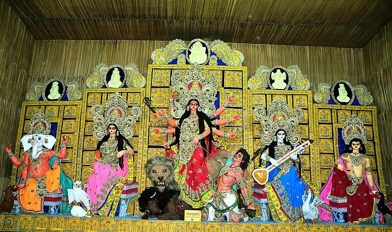 দুর্গা যেন পুরো জগতের প্রতীক। দুর্গাপূজা সমাজের সব বর্ণ, শ্রেণি ও পেশার মানুষের মিলনমেলা ও উৎসব। সবার কল্যাণ ভাবনা ও প্রেরণার উৎস। মায়ের ডান পাশে রয়েছেন লক্ষ্মী ও গণেশ, বাঁ পাশে সরস্বতী ও কার্তিক। লক্ষ্মী ঐশ্বর্য ও সম্পদের, গণেশ সিদ্ধিদাতা ও গণ-ঐক্যের, সরস্বতী জ্ঞানের, কার্তিক শৌর্য-বীর্যের প্রতীক।