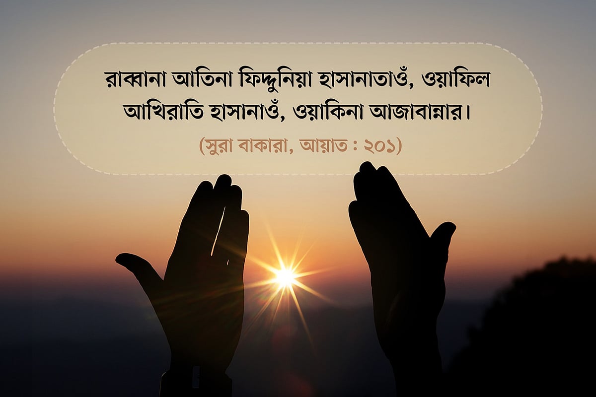 এই দোয়া শুরু হয়েছে রাব্বানা দিয়ে। দোয়ায় তিনটি অংশ আছে—১. দুনিয়ার কল্যাণ ২. আখিরাতের কল্যাণ এবং ৩. জাহান্নামের আগুন থেকে মুক্তি।