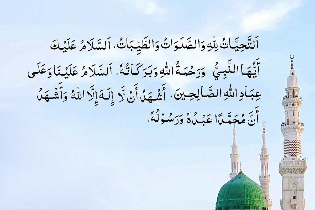 অর্থাৎ, সমস্ত মৌখিক, শারীরিক ও আর্থিক ইবাদত আল্লাহর জন্য। হে নবী, আপনার প্রতি সালাম এবং আল্লাহর রহমত ও বরকত নাজিল হোক। সালাম আমাদের প্রতি এবং আল্লাহর নেক বান্দাদের প্রতি। আমি সাক্ষ্য প্রদান করছি, আল্লাহ ছাড়া আর কোনো উপাস্য নাই এবং আমি আরও সাক্ষ্য দিচ্ছি, নিশ্চয়ই মুহাম্মদ (সা.) আল্লাহর বান্দা এবং রাসুল। (বুখারি, হাদিস: ৬২৬৫)