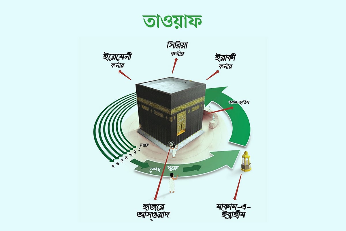 এবার আসা যাক দোয়াগুলো প্রসঙ্গে। কাবা শরিফের চারদিকে ঘোরাকে বলা হয় তাওয়াফ। আর এই তাওয়াফ শেষ করতে হয় কাবাঘরের চারদিকে সাতটি চক্করের মাধ্যমে। সাফা ও মারওয়া পাহাড়ে ছোটাছুটি করাকে বলা হয় সাঈ।