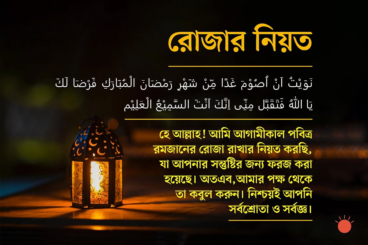 ‘নিয়ত’ অর্থ ইচ্ছা বা সংকল্প করা। নিয়ত করা রোজার একটি অন্যতম রোকন। সুতরাং নিয়ত করা জরুরি। প্রতিটি ফরজ ইবাদতের মতো রোজার জন্যও নিয়ত করা ফরজ এবং রোজা বিশুদ্ধ হওয়ার শর্ত। নিয়ত সম্পর্কে রোজা রাসুল (সা) বলেন, ‘নিশ্চয় সমস্ত আমল নিয়তের ওপরই নির্ভরশীল। ব্যক্তি যা নিয়ত করে তা-ই সে পায়।’ (বুখারি, হাদিস: ১)