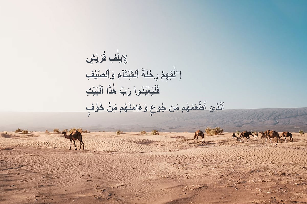 (সুরা কুরাইশ, আয়াত ১–৪, কোরানশরিফ: সরল বঙ্গানুবাদ, অনুবাদ: মুহাম্মদ হাবিবুর রহমান, প্রথমা প্রকাশন)