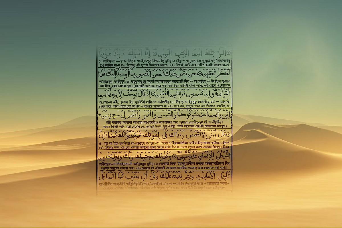 পবিত্র কোরআনের ১২ নম্বর সুরা হলো সুরা ইউসুফ। সুরা ইউসুফে ইউসুফ (আ.)–এর কাহিনিকে ১২ ভাগে বিভক্ত করা যায়। ১. হজরত ইউসুফ (আ.) স্বপ্ন দেখলেন। ২. ইউসুফ (আ.)–এর ভাইয়েরা তাঁর সঙ্গে ষড়যন্ত্র করলেন। ৩. মন্ত্রীর স্ত্রী জোলেখা ইউসুফ (আ.)–এর সঙ্গে তাঁর বাসনা পূরণ করতে চাইলেন। ৪. জোলেখার সহচরীরা ইউসুফ (আ.)–এর রূপে বিবশ হয়ে আপেলের বদলে নিজেদের আঙুল কেটে ফেললেন। ৫. ইউসুফ (আ.)–কে জেলে পাঠানো হলো। ৬. মিসরের বাদশাহ রহস্যময় একটি স্বপ্ন দেখলেন। ৭. ইউসুফ (আ.) বাদশাহর স্বপ্নের ব্যাখ্যা বলে দিলেন। ৮. ইউসুফ (আ.)–কে জেল থেকে বের করা হলো। ৯. জোলেখার সহচরীরা নিজেদের দোষ স্বীকার করলেন। ১০. জোলেখা নিজের দোষ স্বীকার করলেন। ১১. ইউসুফ (আ.)–এর ভাইয়েরা তাঁর কাছে ক্ষমা চাইলেন। ১২. বাদশাহর স্বপ্নের ব্যাখ্যার মর্ম বোঝা গেল। এখানে আরেকটি মিল খুঁজে পাওয়া যায়: ১ নম্বরের (ইউসুফ (আ.) স্বপ্ন দেখলেন) সঙ্গে ১২ নম্বরের (বাদশাহর স্বপ্নের ব্যাখ্যার মর্ম বোঝা গেল) মিল পাওয়া যায়। ২ নম্বরের (ইউসুফ (আ.)–এর ভাইয়েরা তাঁর সঙ্গে ষড়যন্ত্র করলেন) সঙ্গে ১১ নম্বরের (ইউসুফ (আ.)–এর ভাইয়েরা তাঁর কাছে ক্ষমা চাইলেন) মিল পাওয়া যায়। ৩ নম্বরের (মন্ত্রীর স্ত্রী জোলেখা ইউসুফ (আ.)–এর সঙ্গে তাঁর বাসনা পূরণ করতে চাইলেন) সঙ্গে ১০ নম্বরের (জোলেখা নিজের দোষ স্বীকার করলেন) মিল পাওয়া যায়। ৪ নম্বরের (জোলেখার সহচরীরা ইউসুফ (আ.)–এর রূপে বিবশ হয়ে আপেলের বদলে নিজেদের আঙুল কেটে ফেললেন) সঙ্গে ৯ নম্বরের (জোলেখার সহচরীরা নিজেদের দোষ স্বীকার করলেন) মিল পাওয়া যায়। ৫ নম্বরের (ইউসুফ (আ.)–কে জেলে পাঠানো হলো) সঙ্গে ৮ নম্বরের (ইউসুফ (আ.)–কে জেল থেকে বের করা হলো) মিল পাওয়া যায়। ৬ নম্বরের (মিসরের বাদশাহ রহস্যময় একটি স্বপ্ন দেখলেন) সঙ্গে মিল পাওয়া যায় ৭ নম্বরের (ইউসুফ (আ.) বাদশাহর স্বপ্নের ব্যাখ্যা বলে দিলেন)।
