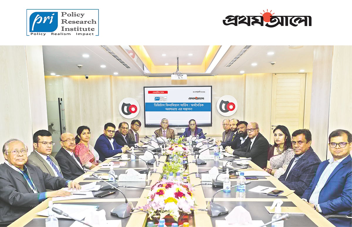 পলিসি রিসার্চ ইনস্টিটিউট (পিআরআই) পরিচালিত বাংলাদেশ পলিসি অ্যাডভোকেসি ইনিশিয়েটিভ প্রকল্প ও প্রথম আলোর আয়োজনে ‘ডিজিটাল ফিন্যান্সিয়াল সার্ভিস: অর্থনৈতিক অগ্রযাত্রায় এর সম্ভাবনা’ শীর্ষক এক গোলটেবিল বৈঠক অনুষ্ঠিত হয় ২৫ জানুয়ারি ২০২৩। এ আলোচনার বক্তব্য সংক্ষিপ্ত আকারে এই ক্রোড়পত্রে ছাপা হলো।