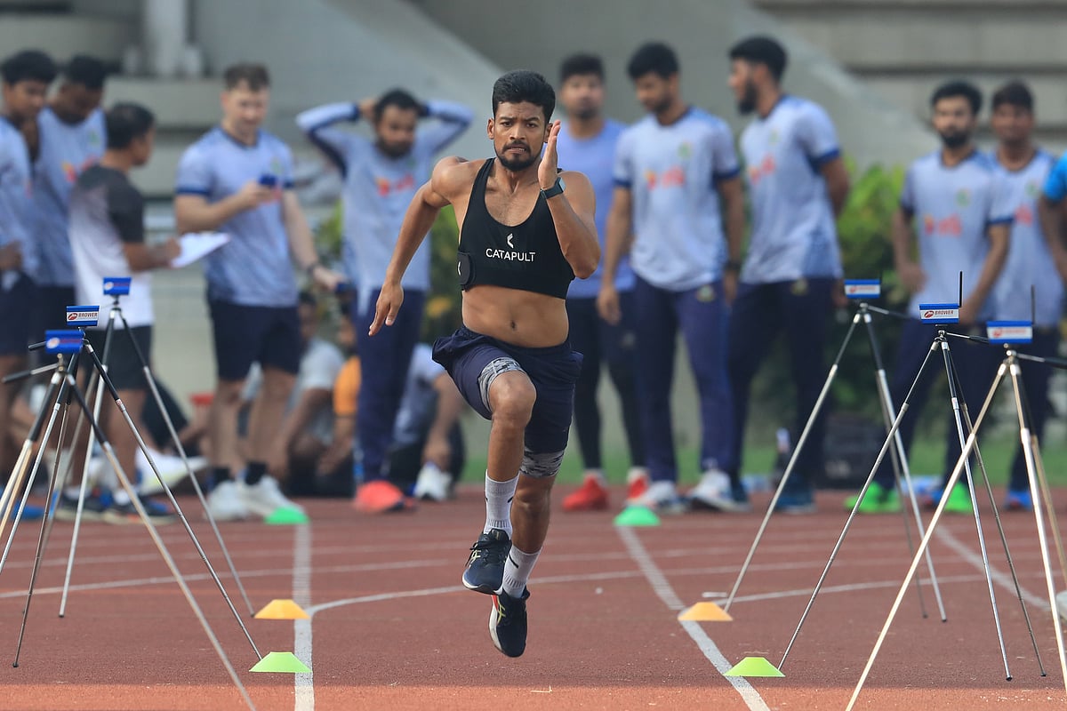 আজ ছিল বাংলাদেশ জাতীয় ক্রিকেট দলের ফিটনেস টেস্ট। সাধারণত এ ধরনের টেস্ট মিরপুর শেরেবাংলা স্টেডিয়ামে হয়ে এলেও এবার হয়েছে বঙ্গবন্ধু জাতীয় স্টেডিয়ামে। দেশের একসময়ের ক্রিকেট–তীর্থে ক্রিকেটাররা দৌড়েছেন অ্যাথলেটিকস ট্র্যাকে, যেখানে দৌড়ালে অপেক্ষাকৃত সঠিক টাইমিং পাওয়া যায়। পল্টনের বঙ্গবন্ধু স্টেডিয়ামে বাংলাদেশ দলের ফিটনেস টেস্টের নানা মুহূর্ত দেখুন ছবির গল্পে। ছবিগুলো তুলেছেন শামসুল হক