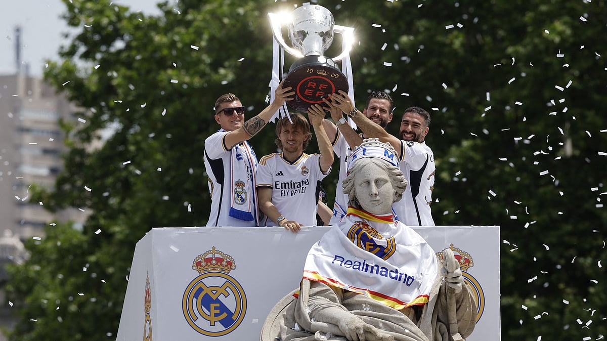 রিয়াল মাদ্রিদের ৩৬তম লিগ শিরোপা উদ্যাপনে সিবেলেস স্কয়ারে নেমেছিল ভক্ত-সমর্থকদের ঢল। ছাদখোলা বাসে ট্রফি হাতে শিরোপা উৎসবের মধ্যমণি ছিলেন আনচেলত্তি-বেলিংহাম-ভিনিসিয়ুসরা। নেচেগেয়ে মুহূর্তটা স্মরণীয় করে রেখেছেন তাঁরা। রিয়ালের শিরোপা উৎসবের নির্বাচিত ছবি নিয়ে ফটো ফিচারের এ আয়োজন—