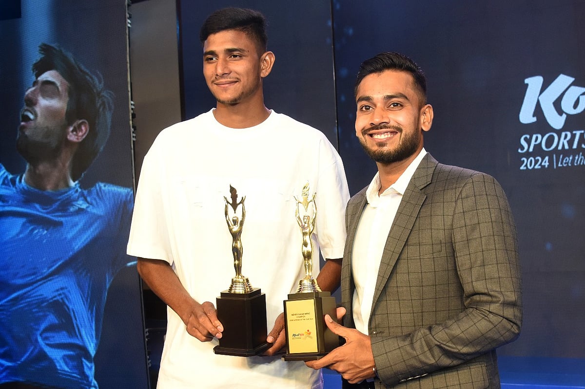 এক ফ্রেমে দুই ক্রিকেটার-মেহেদি হাসান মিরাজ বিএসপিএ বর্ষসেরা আর নাহিদ রানা উদীয়মান ক্রীড়াবিদ
