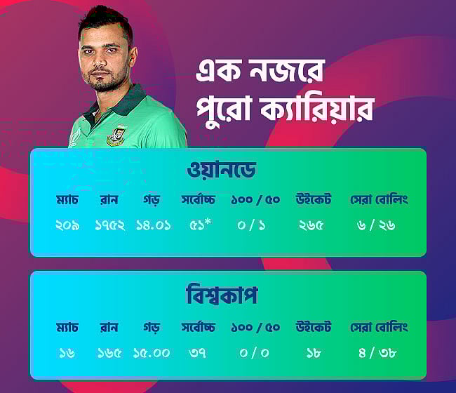বিভীষিকাময় ২০১৪ সালের দুঃস্মৃতি থেকে বেরিয়ে আসার লক্ষ্যেই আরেকবার অধিনায়ক হিসেবে নিযুক্ত হন মাশরাফি। দায়িত্ব নিয়েই খোলনলচে বদলে দেন গোটা বাংলাদেশ দলের চিত্রপট। যেই দলটা কিছুদিন আগেও খুঁজে ফিরছিল জয়ের মুখ, হঠাৎ করেই তাঁরা ঘরের মাটিতে হয়ে উঠল অজেয়। বিশ্বকাপে সাফল্যের পর ২০১৫ সালে বাংলাদেশকে নিয়ে গেলেন অন্য পর্যায়ে। দলে এলেন মোস্তাফিজুর রহমান, ‘স্পিননির্ভর’ বাংলাদেশ প্রবেশ করল ‘চার পেসার’ যুগে। পরিবর্তনের শুরুটা তো হয়েছে তাঁর হাত ধরেই!