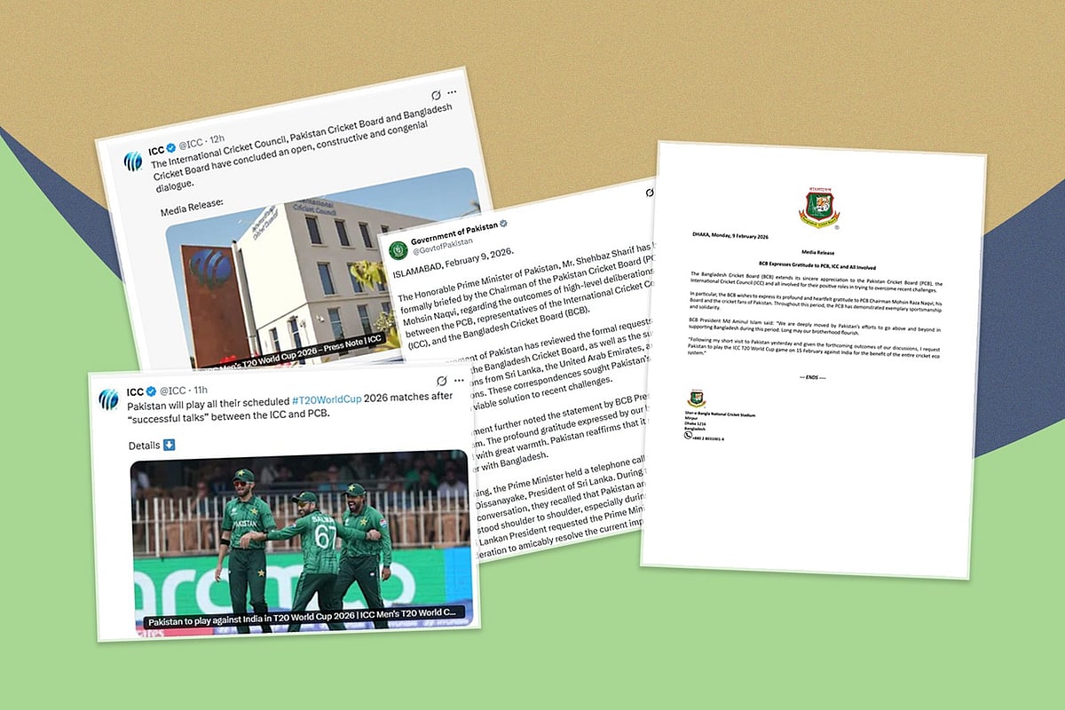 ভারতে খেলতে অস্বীকৃতি জানানোয় বাংলাদেশ দলের টি–টুয়েন্টি বিশ্বকাপ থেকে বাদ পড়া এবং তার জেরে পাকিস্তান সরকার কর্তৃক ভারতের বিপক্ষে না খেলার ঘোষণায় গত কয়েক দিনে বেশ উত্তেজনাই ছিল ক্রিকেট–বিশ্বে। রোববার রাতে লাহোরে আইসিসি, পিসিবি ও বিসিবির ত্রিপক্ষীয় বৈঠকের পর পরিস্থিতি শান্ত হয়ে আসার ইঙ্গিত মেলে, যা আনুষ্ঠানিক রূপ পেয়েছে সোমবার রাতে বিসিবি, আইসিসি ও পাকিস্তান সরকারের দেওয়া বিবৃতিতে। দুই ঘণ্টার মধ্যে প্রকাশ করা চার বিবৃতিতে কী ছিল, সেটাই একনজরে দেখে নেওয়া যাক।