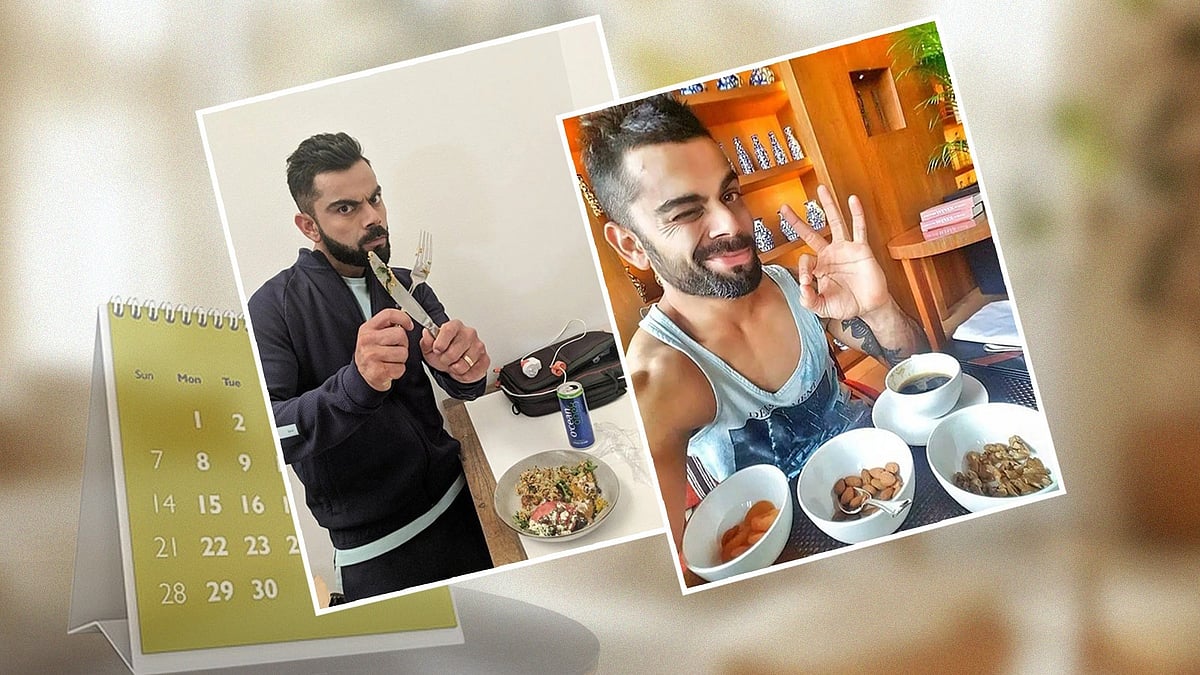 কোহলি চিনি, মিষ্টি, প্রক্রিয়াজাত খাবার ও জাঙ্ক ফুড থেকে দূরে থাকেন। সারাক্ষণ শরীর আর্দ্র রাখেন প্রচুর পানি আর লেবু মেশানো গ্রিন টি খেয়ে। সকালে নাশতা হিসেবে খান সবজি দেওয়া ওমলেট বা উদ্ভিদভিত্তিক বিকল্প, সঙ্গে গ্লুটেনমুক্ত টোস্ট আর ফল। দুপুর-রাতের খাবারে থাকে হালকা প্রোটিন বা নিরামিষ খাবার—ডাল, কুইনোয়া (গুল্মজাতীয় উদ্ভিদের ভোজ্য বীজ), নানা শাকসবজি। বিকেলের নাশতায় থাকে বাদাম, বীজ আর প্রোটিন শেক। তাঁর খাদ্যতালিকা সাজানো পেশির পুনর্গঠন, দীর্ঘস্থায়ী শক্তি ও রোগপ্রতিরোধ বাড়ানোর লক্ষ্য নিয়ে।
