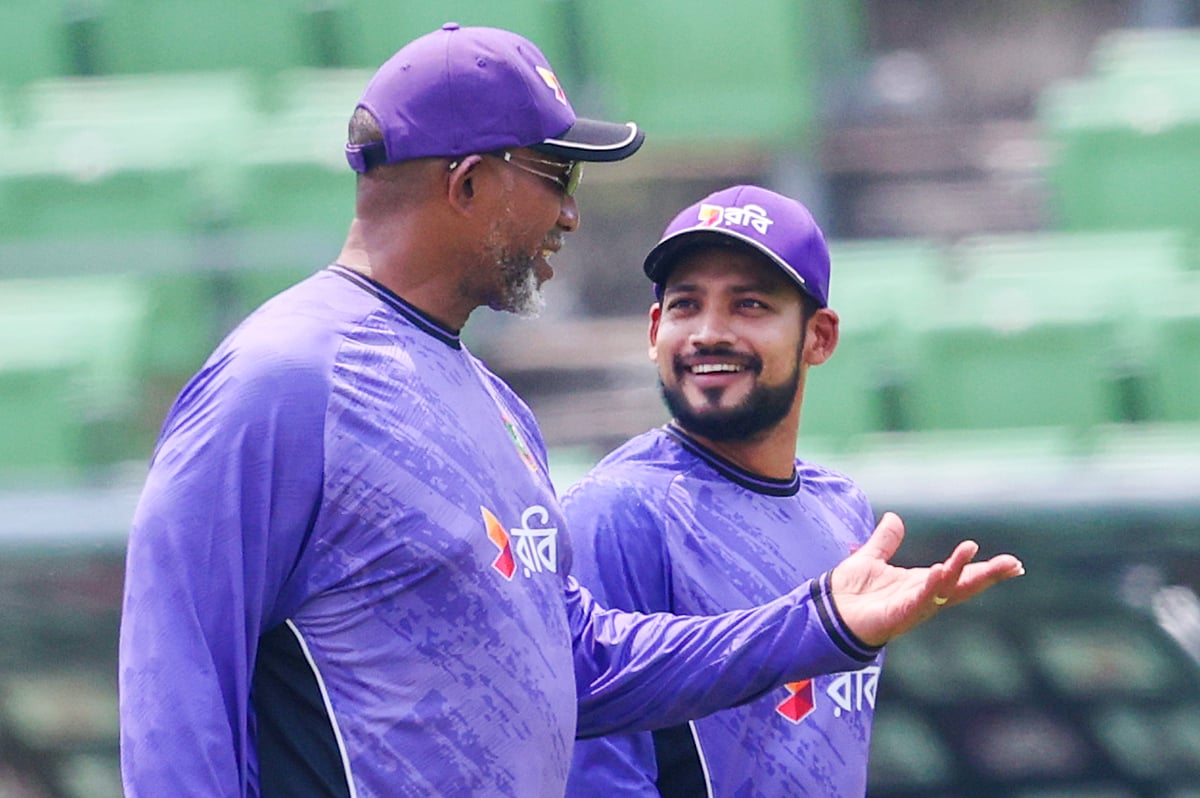 যেন একটা উইকেট পড়ল! অনুশীলন মিরাজ, নাজমুল, নাসুমদের উল্লাস।জাতীয় দলের কোচ ফিল সিমন্সের কী কথাতে হাসছেন টেস্ট অধিনায়ক নাজমুল হোসেন