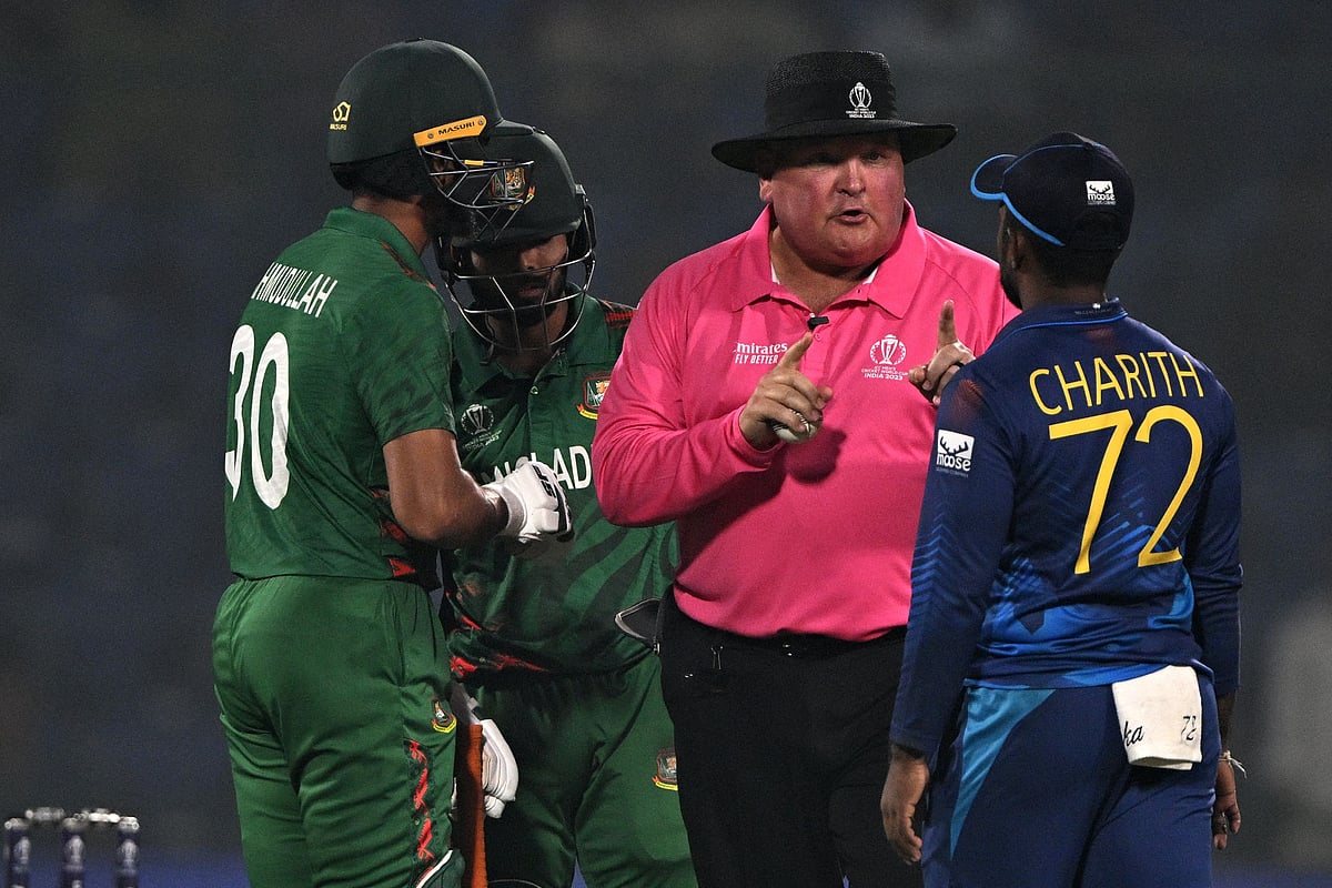 শ্রীলঙ্কার ইনিংসে ম্যাচের ২৫তম ওভারে ‘টাইমড আউট’ হন ম্যাথুস। নতুন ব্যাটসম্যান হিসেবে মাঠে ঢোকেন অ্যাঞ্জেলো ম্যাথুস। উইকেটে গিয়ে দেখলেন, তাঁর হেলমেটের স্ট্র্যাপে কোনো একটা সমস্যা। সম্ভবত ওটা ছেঁড়া ছিল। ড্রেসিংরুমে ইশারা করলেন নতুন হেলমেটের জন্য।