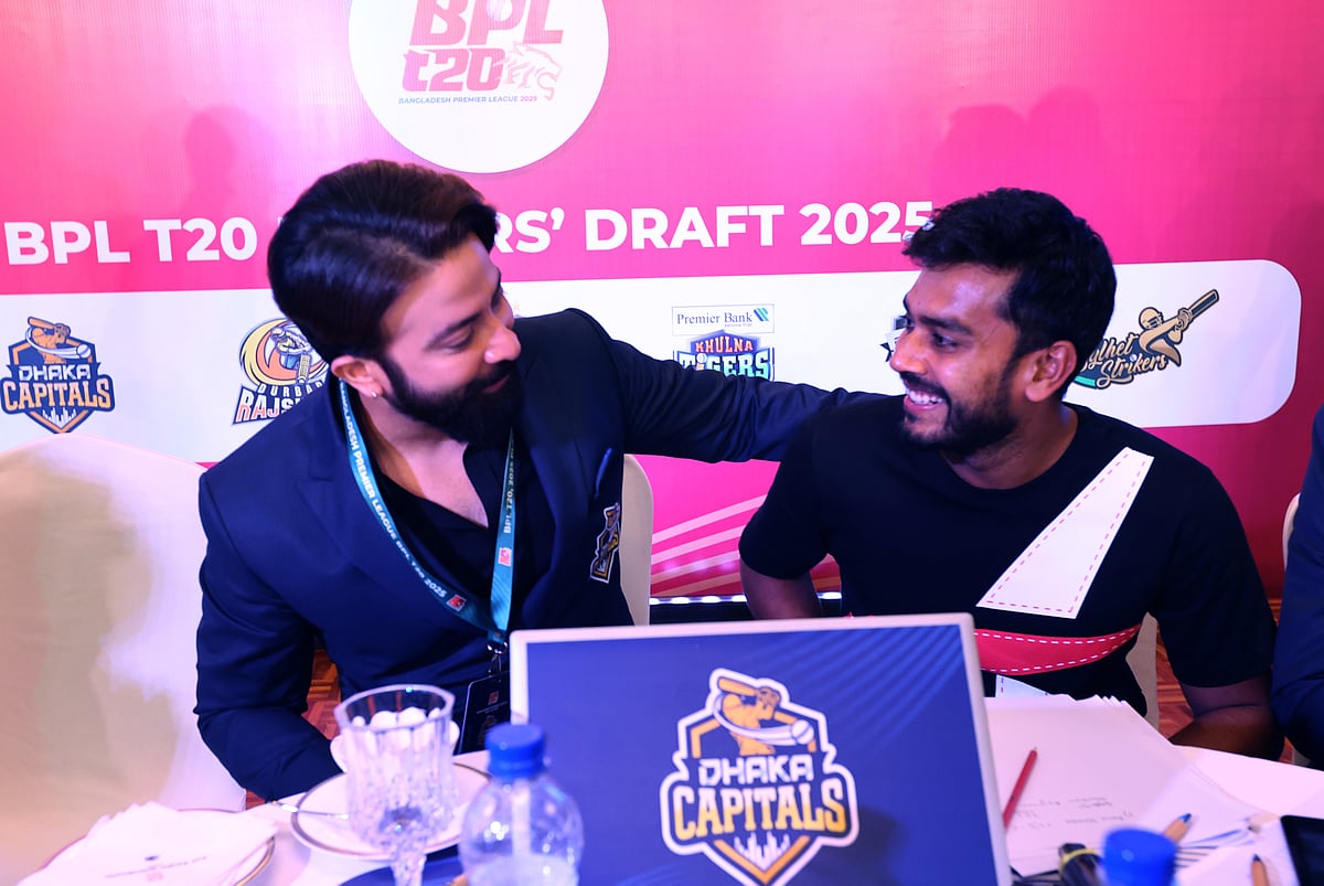 বিপিএলের প্লেয়ার্স ড্রাফটে আজ সোনারগাঁও হোটেলের বলরুমে বসেছিল ক্রিকেটারদের মিলনমেলা। তবে এই মিলনমেলা কেবল বর্তমান-সাবেক ক্রিকেটারদের মধ্যেই সীমাবদ্ধ থাকেনি। ঢালিউডের ‘কিং খান’খ্যাত শাকিব খানের উপস্থিতি ড্রাফটে অন্য মাত্রা যোগ করেছিল। বিপিএল ড্রাফটের সেই আলো-ঝলমলে অনুষ্ঠানের নির্বাচিত ছবি নিয়ে এই আয়োজন—