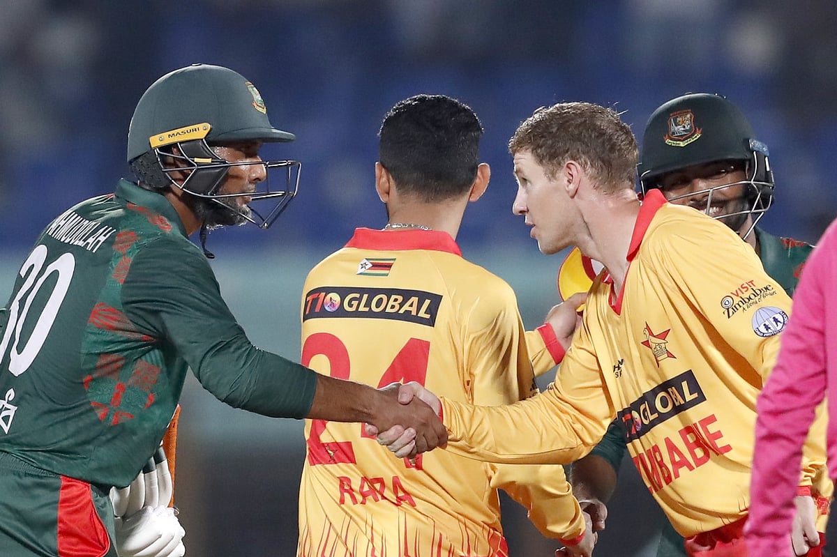 ১৯তম ওভারের চতুর্থ বলে তাসকিনকে টেনে স্ট্রেট দিয়ে ছক্কা মারতে গিয়ে তাওহিদ হৃদয়কে ক্যাচ দেন লুক জঙ্গুয়ে (৩ বলে ২)।