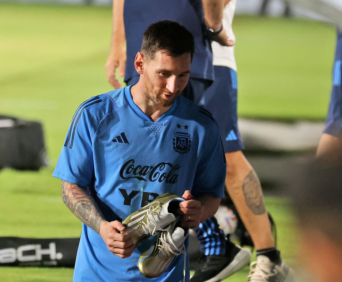 মাঠে অনুশীলনে মেসিকে খানিকটা ক্লান্ত মনে হয়েছে। ফ্রি–কিক নেওয়ার সময় মাটিতে পড়েও গেছেন। বোঝাই যাচ্ছিল, আগের দিন পিএসজির হয়ে ম্যাচ খেলার ধকল তখনো কাটিয়ে উঠতে পারেননি। এরপর কিছুক্ষণ বিশ্রাম নিয়ে আর্জেন্টিনার জার্সি পরে আবারও মাঠে ঢোকেন মেসি। দলের অনুশীলনের ধরনে বোঝা যাচ্ছিল, বুধবার আরব আমিরাতের বিপক্ষে প্রস্তুতি ম্যাচে দল কোন কৌশলে খেলবে, সেই চর্চা চলছে। তবে দুই গোলকিপার ফ্রাঙ্কো আরমানি ও হেরোনিমো রুলিকে গোলপোস্টে দাঁড় করিয়ে শটের অনুশীলন করেননি মেসি। কিছুক্ষণ মাঠে থেকে বুটজোড়া নিয়ে ফিরে আসেন বদলি খেলোয়াড়ের বেঞ্চে।