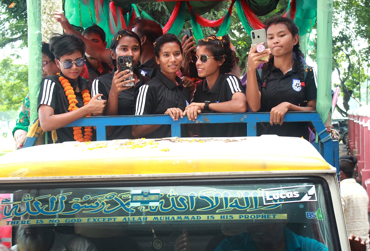 দেশে ফিরে ছাদখোলা বাসে করে বিমানবন্দর থেকে বাফুফে ভবনে গিয়েছিলেন সাফজয়ী ফুটবল দলের খেলোয়াড়েরা। সংবাদমাধ্যম, বিভিন্ন সংবর্ধনায় বেশ ব্যস্ত দিনই কাটছে তাঁদের। কেউ কেউ আগেই একটু নিজ বাড়ি ঘুরে এসেছেন, আজ গেছেন কয়েকজন। ময়মনসিংহ, মাগুরা, সাতক্ষীরা, রাঙামাটি, রংপুর, সিরাজগঞ্জেও সংবর্ধনা পেয়েছেন সানজিদা আক্তার, ঋতুপর্ণা চাকমারা।