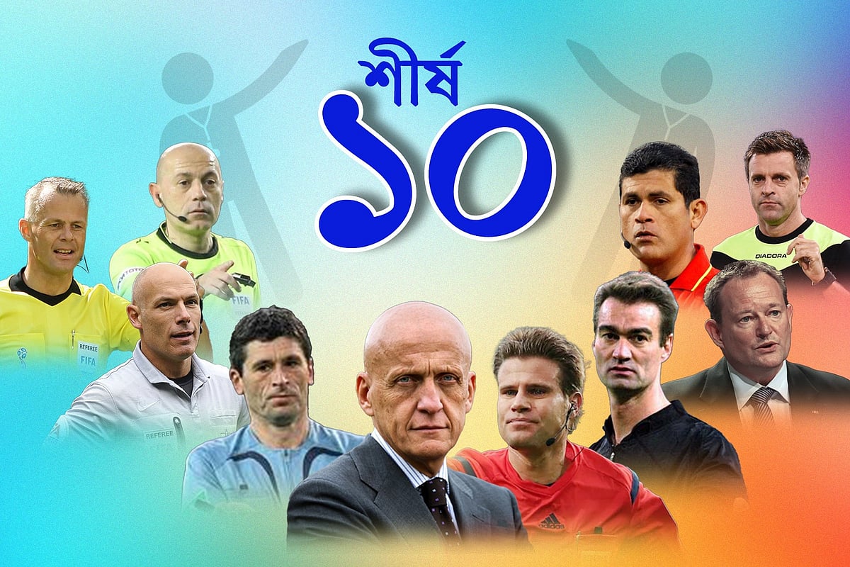রেফারি ফুটবল মাঠের সেই চরিত্র, যিনি আলোচিত বা বিতর্কিত কোনো সিদ্ধান্ত না দিলে তাঁর দিকে কারও চোখ পড়ে না। তবে তাঁর কাজটা যে খুবই গুরুত্বপূর্ণ, সেটা মানেন সবাই। বছরের পর বছর, টুর্নামেন্টের পর টুর্নামেন্ট চাপ সামলে ম্যাচ পরিচালনা করে যাওয়া এই রেফারিদের কেউ কেউ দক্ষতায়, যোগ্যতায় হয়ে ওঠেন সেরাদের একজন। ইন্টারন্যাশনাল ফেডারেশন অব ফুটবল হিস্টোরি অ্যান্ড স্ট্যাটিসটিকস (আইএফএফএইচএস) ফুটবলের সেরা রেফারিদের র্যাঙ্কিং তৈরি করেছে। দেখে নিন শীর্ষ দশে কারা।
