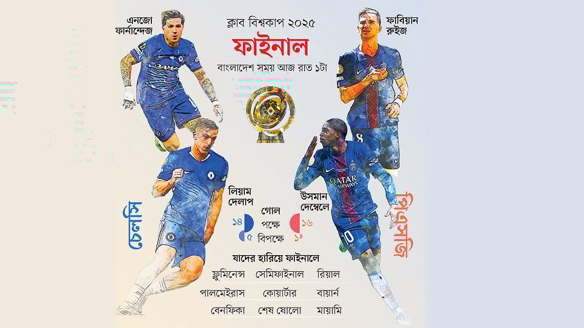 বাজির দর, পণ্ডিতদের বিশ্লেষণ, পারফরম্যান্সের পার্থক্য, খেলোয়াড়দের ছন্দ, সাধারণ ফুটবলপ্রেমীদের ধারণা এবং আরও কোনো মানদণ্ড যদি থাকে—সবকিছুতেই আজ চেলসির চেয়ে পিএসজি অনেক অনেক এগিয়ে। বলা হচ্ছে ক্লাব বিশ্বকাপের ফাইনাল ম্যাচের কথা। যেখানে পিএসজির সময়ের সেরা ক্লাব হওয়ার পথে বাধা এনজো মারেসকার চেলসি।