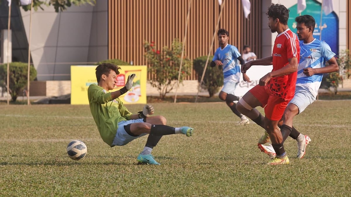 ঢাকার সাভারের বিরুলিয়ায় ড্যাফোডিল ইন্টারন্যাশনাল ইউনিভার্সিটির মাঠে চলছে ইস্পাহানি-প্রথম আলো আন্তবিশ্ববিদ্যালয় ফুটবল টুর্নামেন্ট। আজ ছিল কোয়ার্টার ফাইনাল পর্বের শেষ দিন। দিনের প্রথম ম্যাচে গতবারের চ্যাম্পিয়ন গণ বিশ্ববিদ্যালয়কে বিদায় করে সেমিফাইনালে উঠে গেছে রাজশাহী বিশ্ববিদ্যালয়। পরের ম্যাচে খুলনা বিশ্ববিদ্যালয়কে হারিয়ে শেষ দল হিসেবে শেষ চারে জায়গা করে নিয়েছে ফারইস্ট ইন্টারন্যাশনাল ইউনিভার্সিটি। আজকের কোয়ার্টার ফাইনাল ম্যাচ দুটির বিভিন্ন মুহূর্ত ক্যামেরাবন্দী করেছেন প্রথম আলোর আলোকচিত্রী তানভীর আহাম্মেদ।