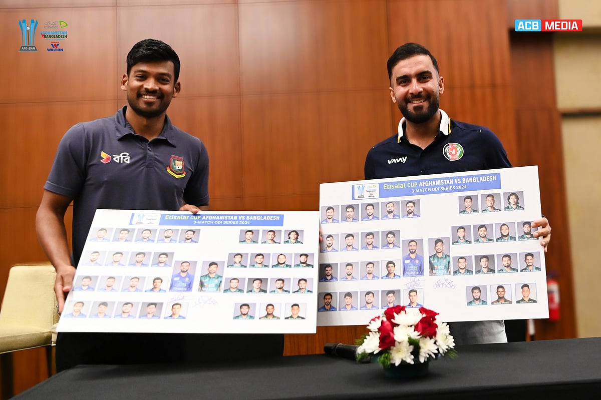 শারজায় নৈশভোজ অনুষ্ঠানে বাংলাদেশ ও আফগানিস্তান দলনৈশভোজে কাজুবাদাম, কাঠবাদাম, পেস্তাবাদাম, আখরোটসহ নানা ধরনের শুকনা ফলের সমারোহনৈশভোজে আফগানিস্তানের তারকা লেগ স্পিনার রশিদ খান (বাঁয়ে) ও অলরাউন্ডার গুলবদিন নাইবআফগান ব্যাটসম্যান রহমত শাহর হয়তো তৃষ্ণা পেয়েছিলবাংলাদেশের অন্তর্বর্তীকালীন প্রধান কোচ ফিল সিমন্সকে (ডানে) হাতে বানানো ঐতিহ্যবাহী গালিচা (কার্পেট) উপহার দিচ্ছেন আফগানিস্তানের প্রধান কোচ জোনাথন ট্রটআফগানিস্তানের কোচিং স্টাফ যেন মনোযোগী শ্রোতামাহমুদউল্লাহকে ফলভর্তি বক্স উপহার আফগান পেসার ফজলহক ফারুকিরসিরিজের স্কোয়াডে থাকা দুই দলের খেলোয়াড়দের ছবি নিয়ে বানানো হয়েছে বোর্ড। তাতে স্বাক্ষর করছেন বাংলাদেশ অধিনায়ক নাজমুল হোসেন (বাঁয়ে) ও আফগানিস্তান অধিনায়ক হাশমতউল্লাহ শহীদিদুই অধিনায়ক নাজমুল (বাঁয়ে) ও শহীদির সই করা বোর্ড প্রদর্শননাজমুলকে গালিচা উপহার দিচ্ছেন শহীদি