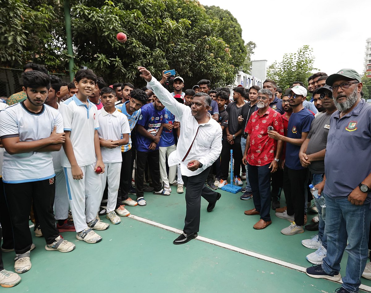 এএফসি উইমেন্স এশিয়ান কাপ বাছাইপর্ব খেলতে মিয়ানমারে গেছে বাংলাদেশ নারী ফুটবল দল। দেশটিতে পৌঁছানোর পর ইয়াঙ্গুনে টিম হোটেলে জিম করেছেন খেলোয়াড়েরা জুভেন্টাসের বিপক্ষে ফিফা ক্লাব বিশ্বকাপের ম্যাচ সামনে রেখে অনুশীলনে ম্যানচেস্টার সিটির স্ট্রাইকার আর্লিং হলান্ডকলম্বো টেস্টের বৃষ্টিবিঘ্নিত প্রথম দিনে বাংলাদেশের ৮ উইকেট নিয়েছে শ্রীলঙ্কা। স্বাভাবিকভাবেই লঙ্কানরা মাঠ ছেড়েছেন হাসিমুখেকলম্বো টেস্টে হঠাৎ বৃষ্টির হানা। দ্রুত পিচ ও এর চারপাশ ঢাকতে কাভার নিয়ে ছুটে আসছেন মাঠকর্মীরালাফিয়ে ওঠা বলটা এভাবেই সামলেছেন বাংলাদেশ ওপেনার সাদমান ইসলাম। শ্রীলঙ্কার উইকেটকিপার কুশল মেন্ডিস দারুণ দক্ষতায় সেই বল গ্লাভস বন্দী করেছেনবার্বাডোজে আজ শুরু হয়েছে ওয়েস্ট ইন্ডিজ-অস্ট্রেলিয়ার প্রথম টেস্ট। খেলা শুরুর আগে সিরিজের ট্রফি উন্মোচন করেন দুই অধিনায়ক রোস্টন চেজ (ডানে) ও প্যাট কামিন্স। ওয়েস্ট ইন্ডিজের টেস্ট অধিনায়ক হিসেবে এটিই চেজের প্রথম ম্যাচ৫২ ওয়ানডে ও ৬৩ টি-টোয়েন্টি—সাদা বলের ক্রিকেটে ব্র্যান্ডন কিং ওয়েস্ট ইন্ডিজ দলের নিয়মিত মুখ। তবে কিংয়ের টেস্ট অভিষেক হলো আজ। টেস্ট ক্যাপ পরার পর তাঁকে করতালি দিয়ে অভিনন্দন জানান সতীর্থরা বাংলাদেশের বিপক্ষে কলম্বো টেস্ট দিয়ে আন্তর্জাতিক ক্রিকেটে অভিষেক হয়েছে সোনাল দিনুশার। তাঁকে টেস্ট ক্যাপ পরিয়ে দেন কুশল মেন্ডিস। শ্রীলঙ্কার এই বোলিং অলরাউন্ডার প্রথম দিন নিয়েছেন লিটন দাস ও মুশফিকুর রহিমের উইকেট অনূর্ধ্ব-১২ সিক্স এ সাইড টুর্নামেন্টের একটি ম্যাচের মুহূর্ত। আজ ধানমন্ডির রিয়া গোপ মহিলা ক্রীড়া কমপ্লেক্সেটেস্ট ক্রিকেট থেকে অবসর নিলেও অ্যাঞ্জেলো ম্যাথুসের মনটা বোধ হয় মাঠেই পড়ে ছিল। তাই আজ শুরু হওয়া বাংলাদেশ-শ্রীলঙ্কা কলম্বো টেস্ট দেখতে গেছেন সিংহলিজ স্পোর্টস ক্লাব গ্রাউন্ডে। দর্শক ম্যাথুস ক্যামেরাবন্দী হয়েছেন এভাবেইবাংলাদেশের টেস্ট মর্যাদা পাওয়ার রজতজয়ন্তী উদ্যাপনে দেশজুড়ে নানা আয়োজন করছে বিসিবি। সেসব আয়োজন দেখতে বোর্ড সভাপতি আমিনুল ইসলাম আজ গিয়েছিলেন রাজধানী ধানমন্ডির রিয়া গোপ মহিলা ক্রীড়া কমপ্লেক্সে। সেখানে আমিনুলকে দেখা গেল বোলারের ভূমিকায়