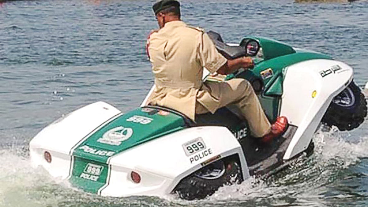 দুবাই পুলিশের বিশেষ সদস্যদের যে বিলাসবহুল সুপারকার রয়েছে, সেটা অনেকেরই জানা। তবে তাঁদের এমন গাড়িও আছে, যা রাস্তা আর পানিতে সমান তালে চলতে পারে। দুবাইয়ের পুলিশ বাহিনীতে উভচর গাড়ি যুক্ত হয় ২০১৪ সালে। উভচর এই গাড়িগুলো রাস্তা থেকে পানিতে নামানোর জন্য থামানোর প্রয়োজন নেই। চলতে চলতেই রাস্তা শেষে পানিতে নামিয়ে দিলে এক বিশেষ সেন্সর গাড়িটিকে পানিতে ভাসমান ও চলমান করে তোলে। কে জানে, চোর ভাগতে গিয়ে যদি রাস্তা থেকে পানিতে নেমে পড়ে? তাই হয়তো আগে থেকেই এই ব্যবস্থা দুবাই পুলিশের।