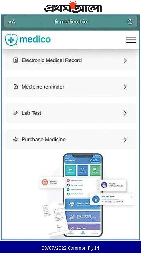 মেডিকো বায়ো লিমিটেডের প্রধান পরিচালন কর্মকর্তা নাজমুল আলম প্রথম আলোকে বলেন,‘২৪ ঘণ্টা অডিও ও ভিডিও কলে চিকিৎসকদের পরামর্শসহ বিভিন্ন ধরনের স্বাস্থ্যসেবা নিশ্চিত করতে আমরা মেডিকো অ্যাপটি বাজারে এনেছি। আগামী ৫ আগস্ট পর্যন্ত অ্যাপটির সাহায্যে চিকিৎসকের সঙ্গে বিনা মূল্যে পরামর্শ করা যাবে। দেশের যেকোনো প্রান্ত থেকে, যেকোনো সময় এ সেবা পাওয়া যাবে।’