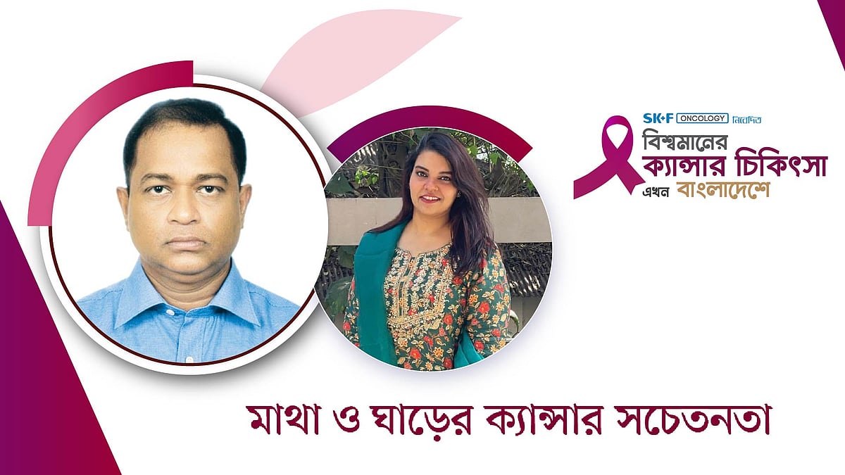 <p>এসকেএফ অনকোলজির বিশেষ আয়োজন : বিশ্বমানের ক্যানসার-চিকিৎসা এখন বাংলাদেশে | পর্ব–৬৮</p><p>বিষয়: মাথা ও ঘাড়ের ক্যান্সার সচেতনতা</p><p><strong>অতিথি</strong></p><p>ডা. আলী আসগর চোধুরী</p><p>সহযোগী অধ্যাপক রেডিওথেরাপী বিভাগ চট্টগ্রাম মেডিকেল কলেজ হাসপাতাল</p><p><strong>সঞ্চালক</strong></p><p>নাসিহা তাহসিন</p>