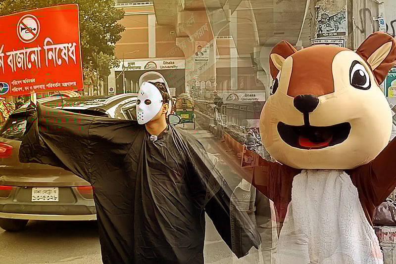 শব্দদূষণ নিয়ন্ত্রণে ডেভিল ও পরির সাজে রাজধানী ঢাকার সড়কে নেমেছেন স্বেচ্ছাসেবকেরা। অযথা হর্ন না বাজাতে চালকদের সচেতন করছেন তাঁরা। ৫ জানুয়ারি সোমবার বেলা ১টার দিকে পরিবেশ, বন ও জলবায়ু মন্ত্রণালয়ের ক্যাম্পেইনের অংশ হিসেবে গ্রিন ভয়েসের স্বেচ্ছাসেবীরা ঢাকা বিশ্ববিদ্যালয়ের টিএসসি মোড়সহ রাজধানীর ৭টি স্থানে এই কর্মসূচি পরিচালনা করেন। বিস্তারিত ভিডিওতে...