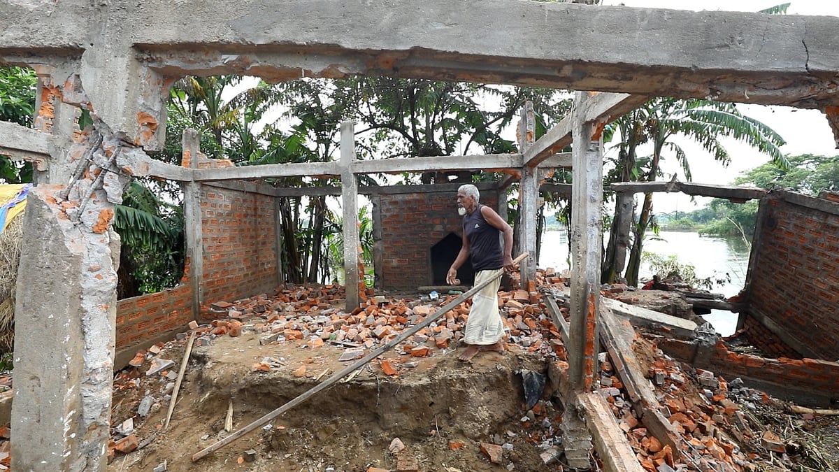 ৯ সদস্যের পরিবার নিয়ে বন্যায় ঘরহারা যে মানুষ