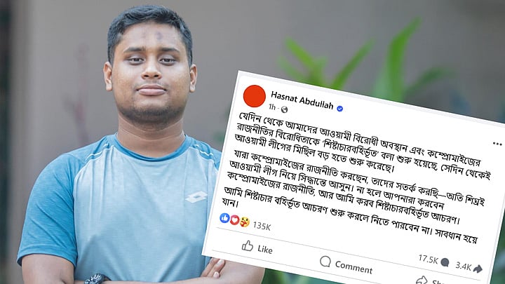 আওয়ামী লীগের পুনর্বাসন নিয়ে হাসনাত আবদুল্লাহর একটি ফেইসবুক পোস্ট ব্যাপক আলোচনার জন্ম দিয়েছে। প্রথম আলোকে সে পোস্টের ব্যাখ্যা দিয়েছেন জাতীয় নাগরিক পার্টির এ নেতা। বিস্তারিত ভিডিও প্রতিবেদনে।
