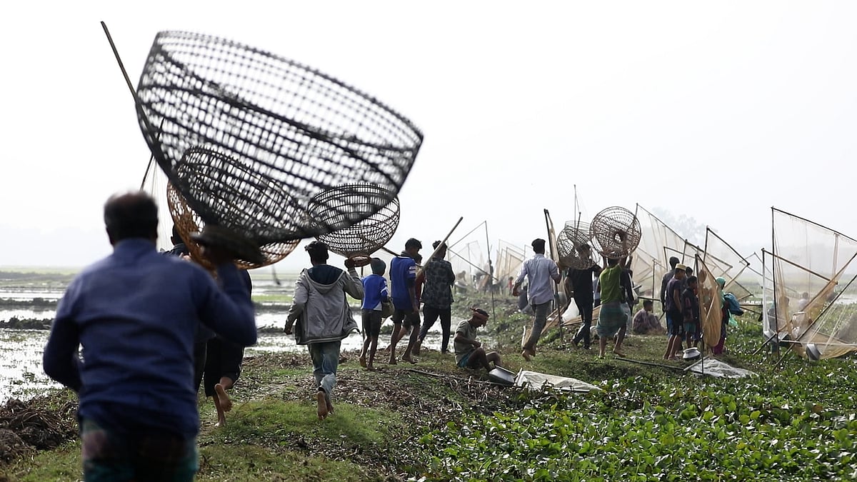 একদিন সবাই মিলে মাছ ধরেন যে গ্রামের মানুষ