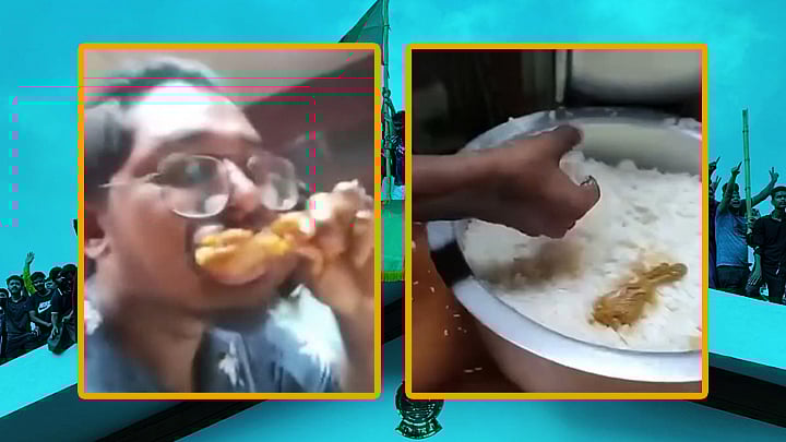 গণভবনে পোলাও-কোরমা খাচ্ছেন ছাত্র-জনতা